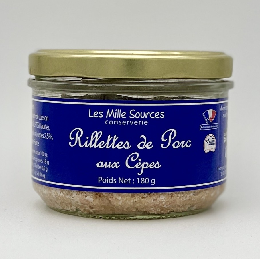 Ingrédients : Viande de porc* 62%, bouillon de cuisson (saindoux, eau, vin blanc), cèpes.*Origine France